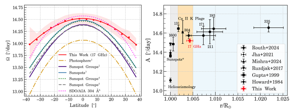 Based on the recent study by Routh, S., “Insights into chromospheric large-scale flows using Nobeyama 17 GHz radio observations: I. The differential rotation profile”, Astronomy and Astrophysics Letters, vol. 700, Art. no. L3, 2025. doi:10.1051/0004-6361/202555364